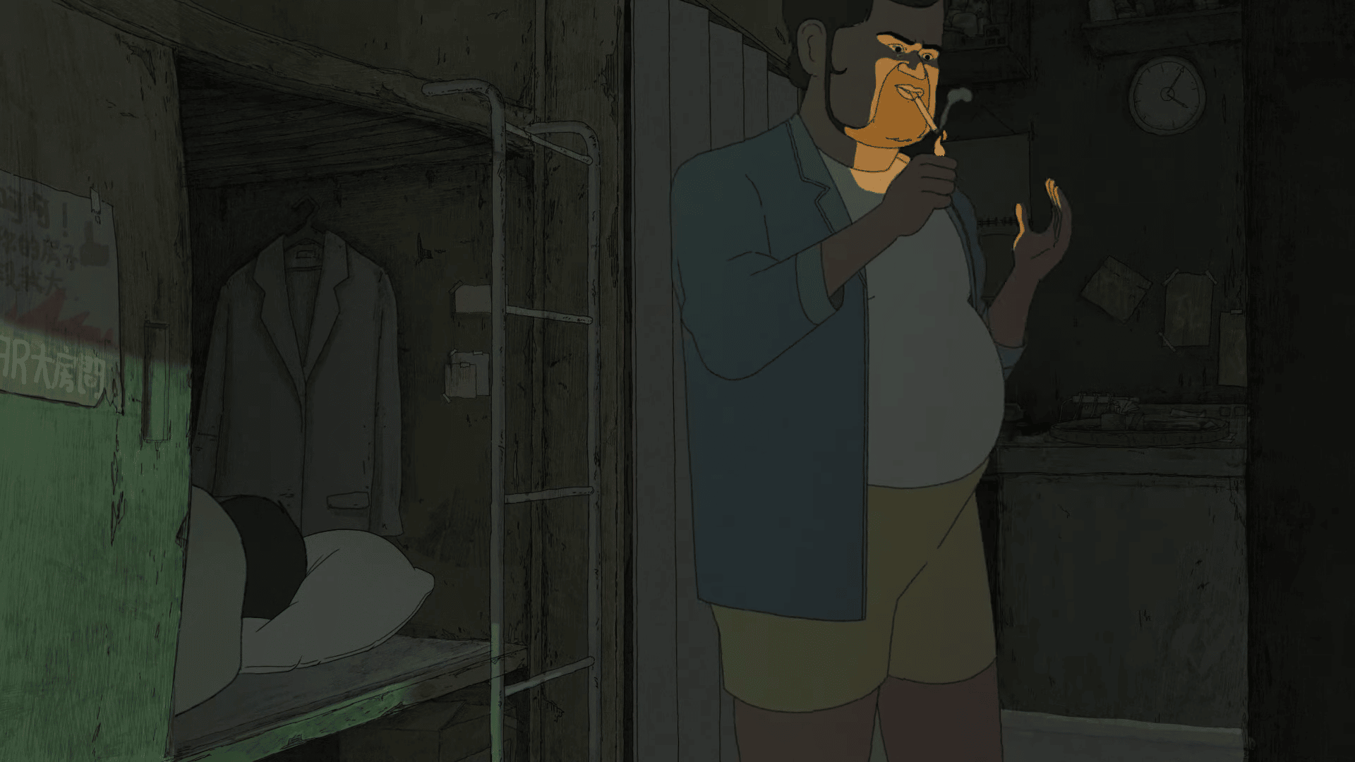 The story is simple: a man comes home after work, just wanting to sleep. But his roommates have other plans. A toilet flush, a TV game show, someone snoring — all these little sounds grow louder and louder until they’re unbearable. The film builds like a crescendo: what starts as small irritations quickly spirals into madness. It’s suffocating. The confinement of all these people stacked together in “coffin homes” is so palpable, you can almost feel the walls pressing in.