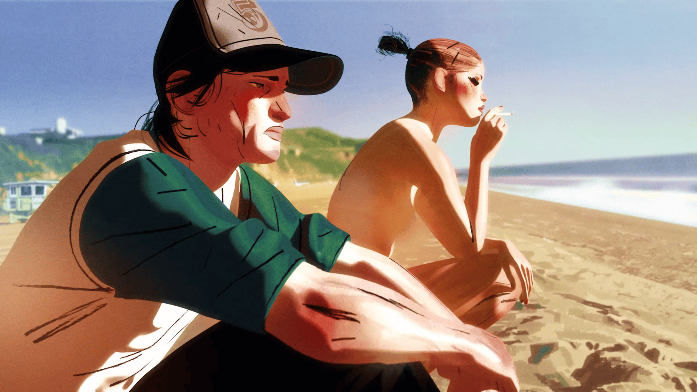 And suddenly, the CG choice made perfect sense. It’s not just mimicry — it’s a deliberate use of the medium. There are moments in this film that could never exist in live action. Text messages on a satellite. A surreal Tinder session between two people sitting side by side. A long, wordless gaze between a couple on a beach that feels like it lasts forever — and somehow, you wish it did.